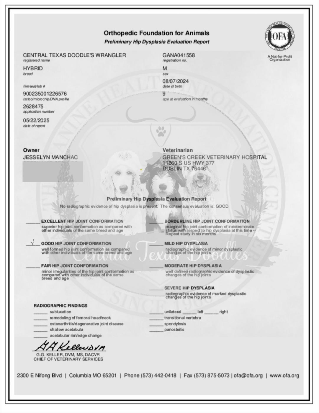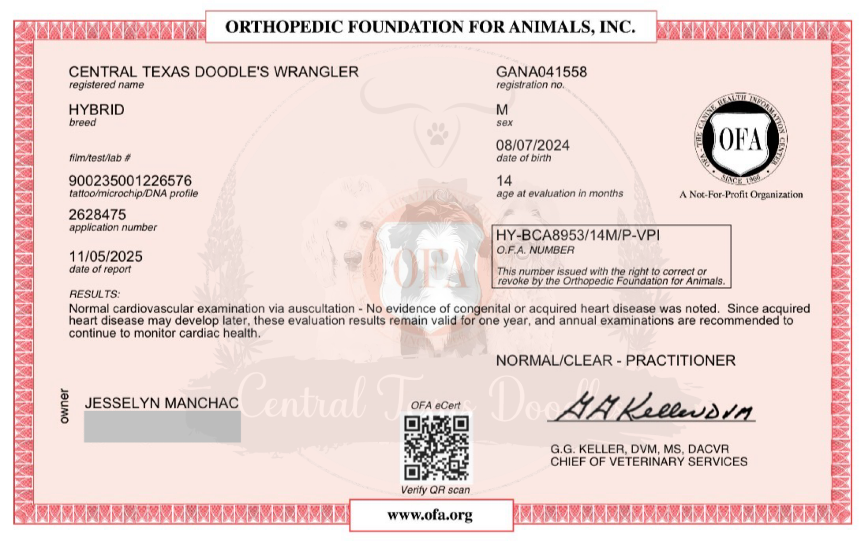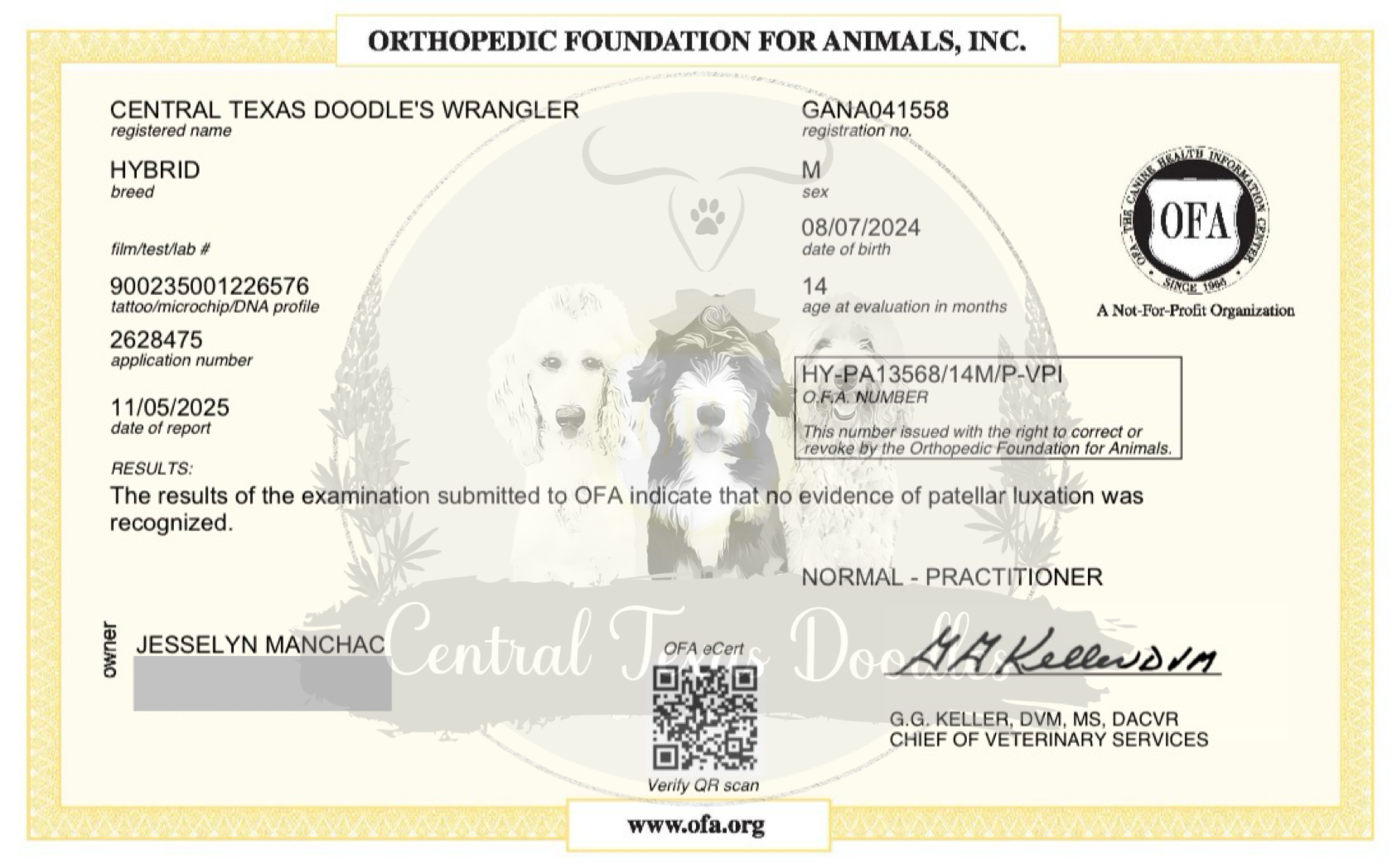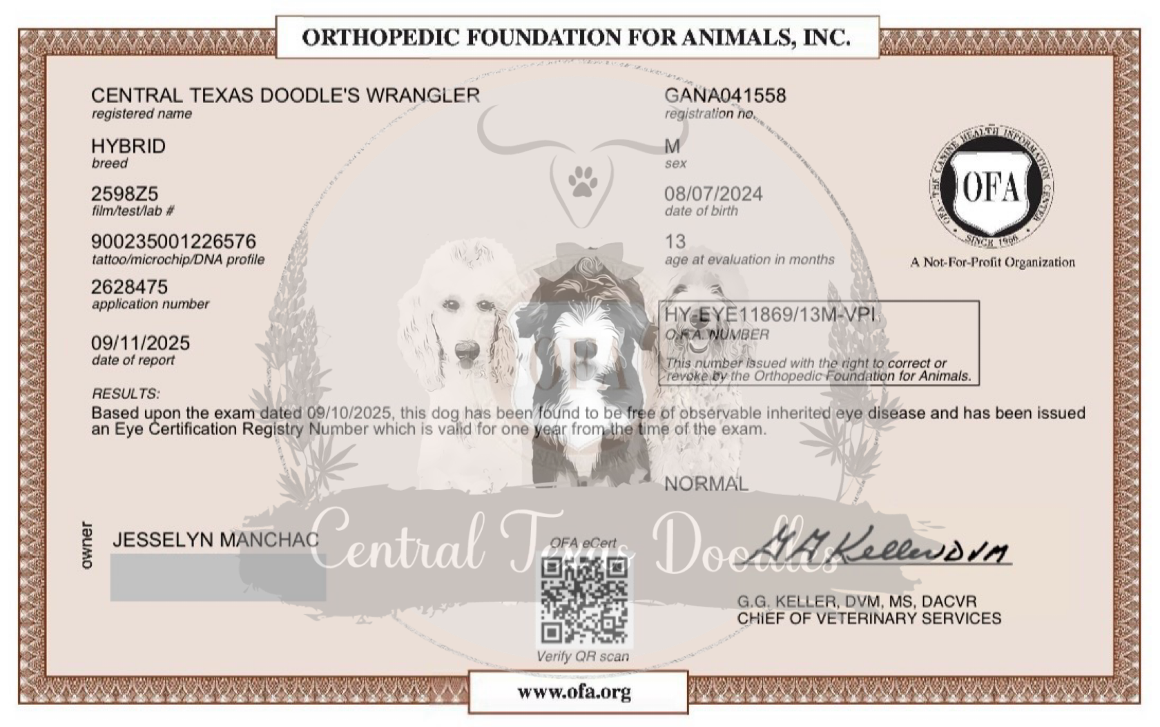 - Sire: Linus (Donna’s Doodlebugs Sir Linus)