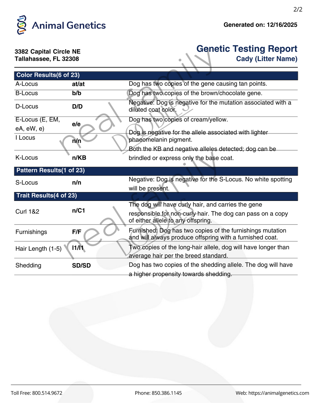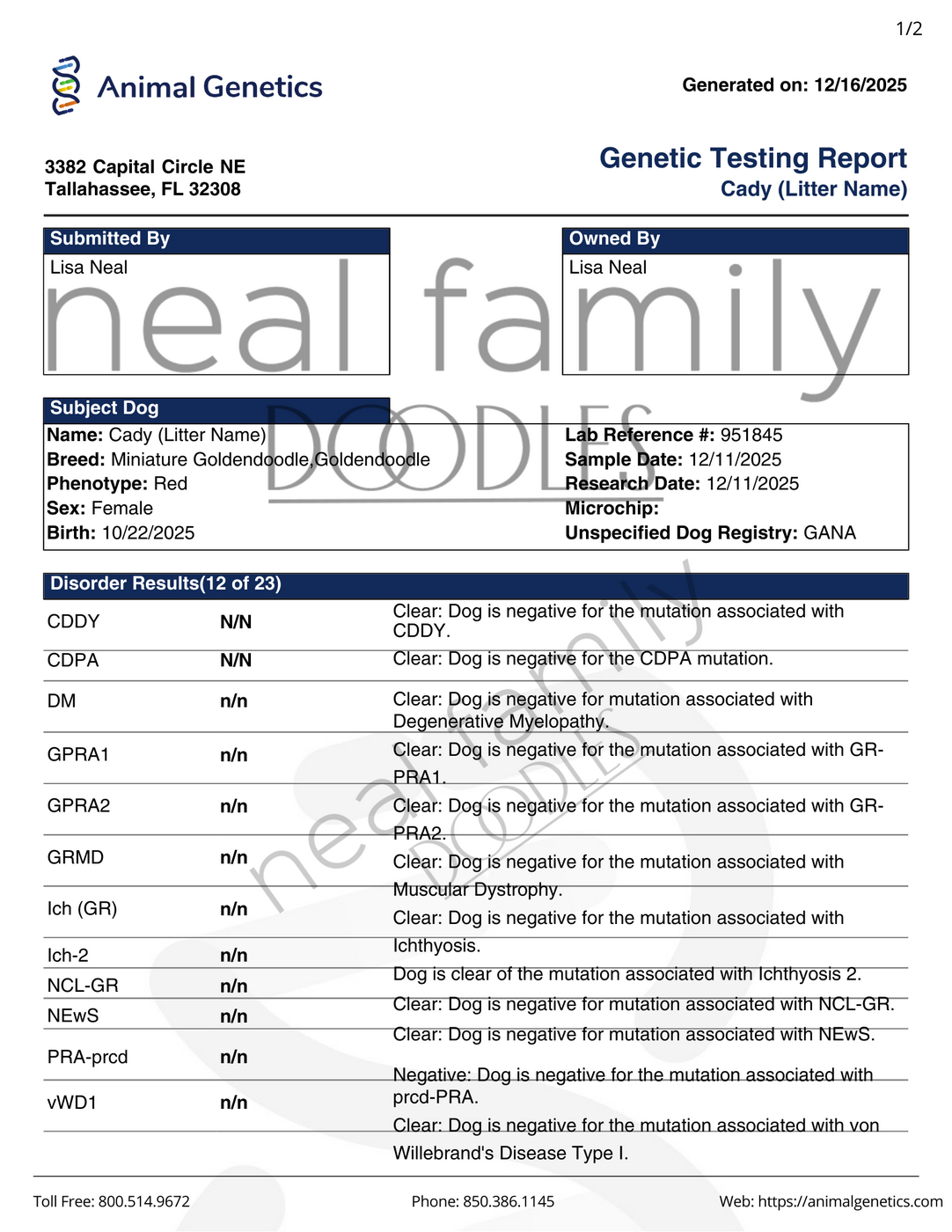 - Animal Genetics Health Results: Clear